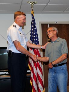 Refat "Ray" Ibrahim, an industrial hygienist at Hill Air Force Base in the 75th Aerospace Medicine Squadron, received a 50-year pin in acknowledgment of his years of service at Hill Air Force Base on Aug 1.Maj. Gen. Andrew Busch, Ogden Air Logistics Center commander, attached the pin to his collar