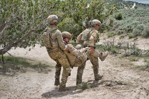 Center, Col. Ryan Nash, incoming 309th Aircraft Maintenance Group commander, renders a salute to Brig. Gen. Richard Gibbs, Ogden Air Logistics commander, during a change of command ceremony at Hill Air Force Base, Utah, June 15, 2023. (U.S. Air Force photo by R. Nial Bradshaw)